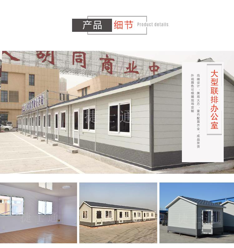 配置:整體鋼骨架焊接,屋頂鍍鋅板噴涂,外鋪彩色油氈瓦,塑鋼門窗、漏電保護(hù)器、PVC吊頂、復(fù)合木地板、照明燈、插座等。(如需空調(diào)、斷橋鋁門窗、隔間等特殊配置請聯(lián)系客服!)