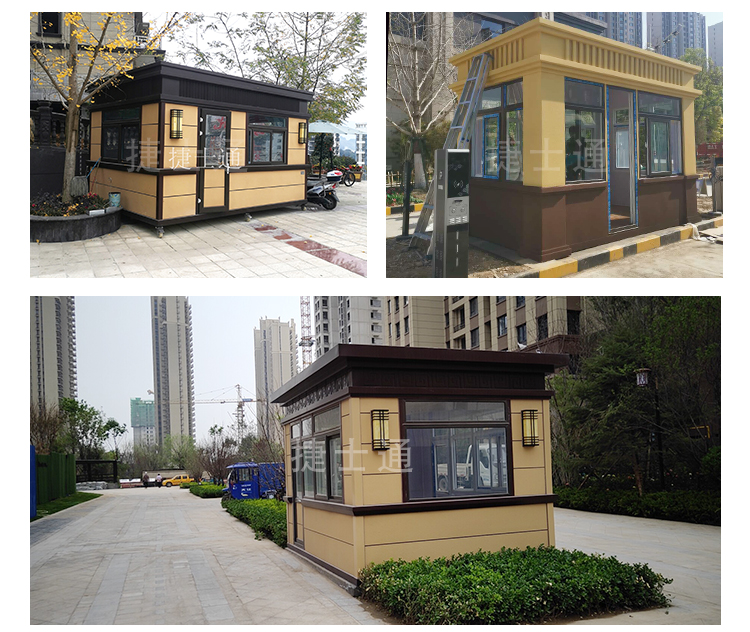 門衛(wèi)室崗?fù)?/a>可以按照尺寸進(jìn)行定制,一般都是肯定場地的情況而定,配置:整體鋼骨架焊接,屋頂鍍鋅板噴涂,外鋪彩色油氈瓦,塑鋼門窗、漏電保護(hù)器、PVC吊頂、復(fù)合木地板、照明燈、插座等。(如需空調(diào)、斷橋鋁門窗、隔間等特殊配置請聯(lián)系客服!)
