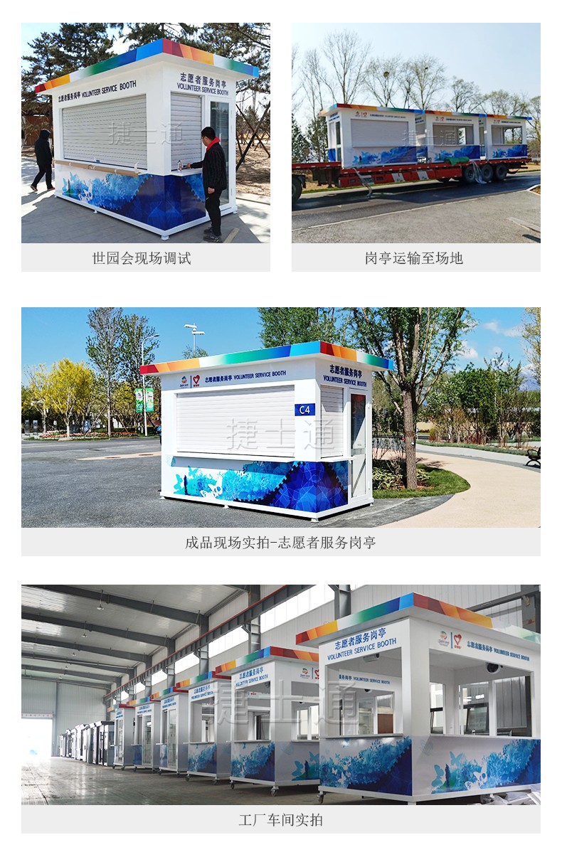 2、從用途來講:崗亭是屬于安防行業(yè)的;可以分為:志愿者服務亭、保安亭、治安崗亭、警務崗亭 、門衛(wèi)亭、值勤崗亭、停車場崗亭、景區(qū)崗亭、高速崗亭等等,