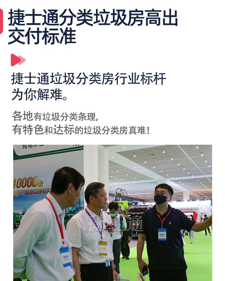 天津市垃圾房展會,北京市垃圾房展會都會出現(xiàn)捷士通的身影,參加垃圾房展會,都是有不同的產(chǎn)品展示,在展會進(jìn)行講解,交談,技術(shù)交流等活動!