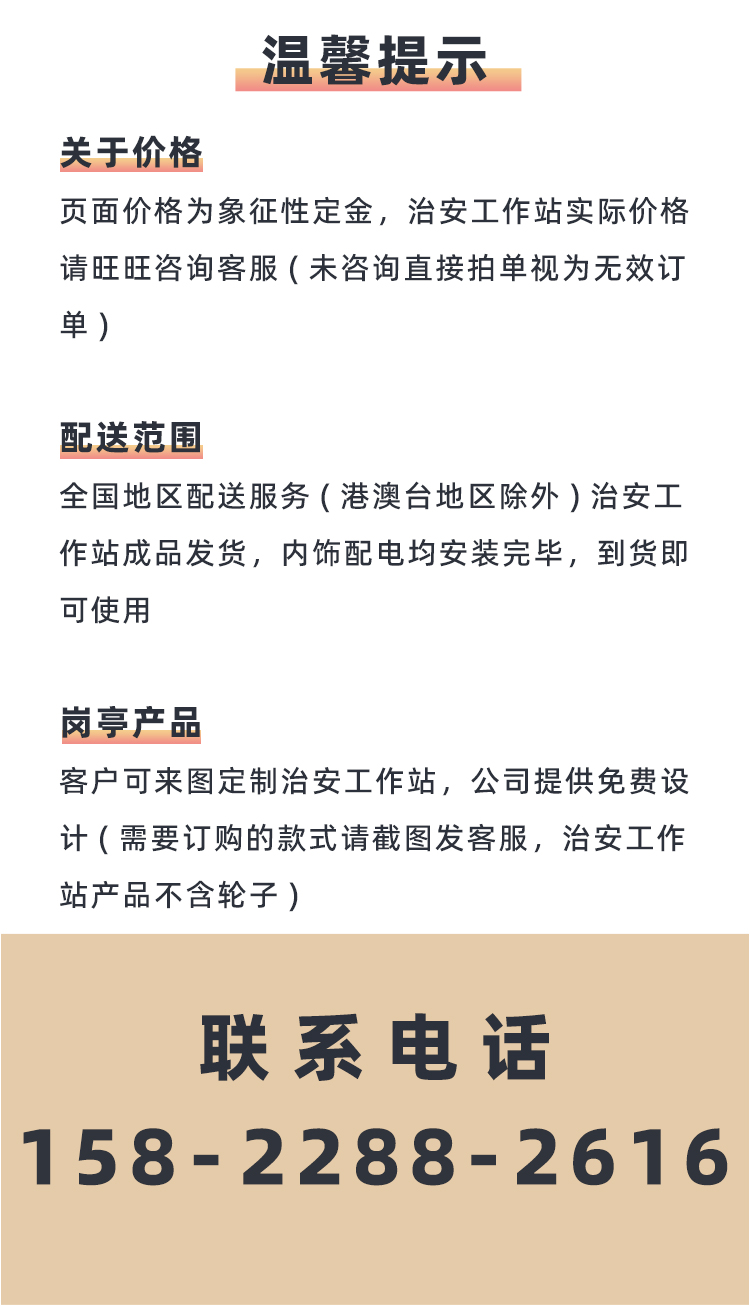 裝配式警務(wù)工作站是融合社會(huì)化、智能化、法治化、經(jīng)驗(yàn)豐富化的社會(huì)治理模式,實(shí)現(xiàn)24小時(shí)的便捷式工作模式,相當(dāng)于便民店的模式,警民一家親在這里隨時(shí)上演。有效提升了人口密集區(qū)域社會(huì)治安駕馭能力和創(chuàng)新服務(wù)群眾能力。一是基于街面治安防控力量投放效能考慮,針對(duì)街面治安有限的警力一定程度制約了街面治安防控效能,提高警力投放和勤務(wù)運(yùn)行效能,并積極拓展群防群治力量是 這一困局的較 佳途徑。二是基于街面防控快速反應(yīng)的現(xiàn)實(shí)需求考慮。圍繞“較 近警力響應(yīng)、較 短距離處置”的目標(biāo),構(gòu)建“一鍵響應(yīng)”的情指行合成作戰(zhàn)全產(chǎn)業(yè)鏈生態(tài)體系,以大數(shù)據(jù)牽引優(yōu)化警力流,有效解決了指令不暢、多頭指揮、信息不對(duì)稱(chēng)等問(wèn)題,三是基于人民群眾對(duì)政府服務(wù)升級(jí)的新期盼考慮。新時(shí)期,人民群眾對(duì)社會(huì)治理的需求不再局限于打擊違法犯罪這些基本的安全保障,日趨傾向于更高層次的政府便民服務(wù)。為此,聯(lián)勤警務(wù)站實(shí)行“24小時(shí)不打烊”,開(kāi)設(shè)街面便民服務(wù)一站式窗口,推出以“善警辦理”為主要內(nèi)容的“較 多跑一次”服務(wù),實(shí)現(xiàn)了群眾到政府辦事“就近跑”
